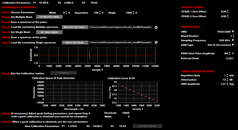 - SHAPER CALCS now has an option to perform calculations for the visible AOM as well as the mid-IR AOM