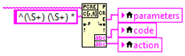 The plugin should be able to parse the command string into the hardware code, action code and a parameters. One possible method is using the regular expression search function: