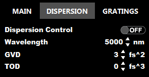 The Dispersion tab allows control of GVD and TOD correction: