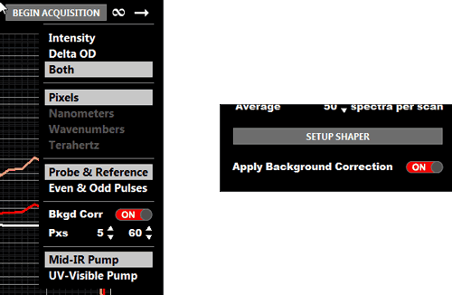 Comment - It is generally recommended to leave the background correction off for ACQUIRE mode and do the background correction in post-processing. The advantage of doing it in post is there will be more flexibility in how the background correction is done.